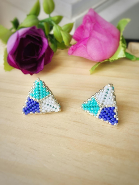 Topos triangulares tejidos a mano con delicas marca Miyuki
